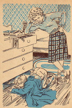 Illustrations by Paul Frame are from the 1961 Cellophane edition of Trixie Belden and the Black Jacket Mystery and are copyright © Random House Books. Trixie Belden® is a registered trademark of Random House Books. These pages are not affiliated with Random House Books in any way. These pages are not for profit.