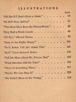 The Dustjacket editions of the first three books in the series had captions under the illustrations. Additionally, the Dustjacket edition of The Secret of the Mansion has a list of illustrations.