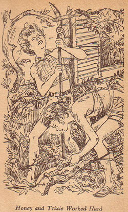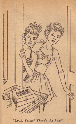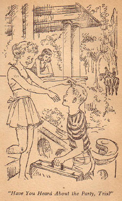 Illustrations by Mary Stevens are from the 1951 Dustjacket edition of Trixie Belden and the Gatehouse Mystery and are copyright © Random House Books. Trixie Belden® is a registered trademark of Random House Books. These pages are not affiliated with Random House Books in any way. These pages are not for profit.